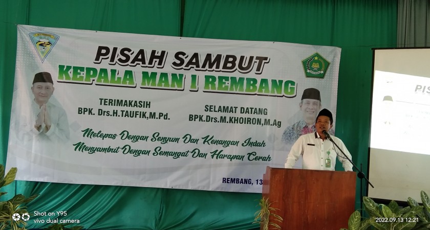 Selasa (13/9/2022), Acara pisah sambut kepala Madrasah Aliyah Negeri (MAN) 1 Rembang berjalan lancar. Rotasi jabatan sudah menjadi hal wajar dalam penyegaran serta peningkatan kompetensi kepala madrasah.